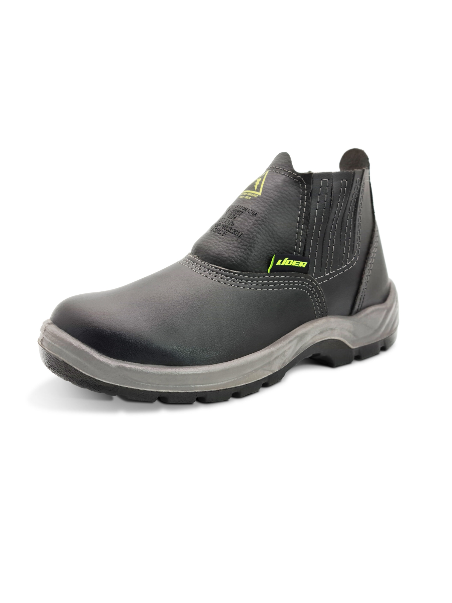 Cabedal: Confeccionado em microfibra impermeável, costura simples quadruduplas, fechamento em elástico, forração interna em tecido de poliéster com alta capacidade de absorção e dessorção.