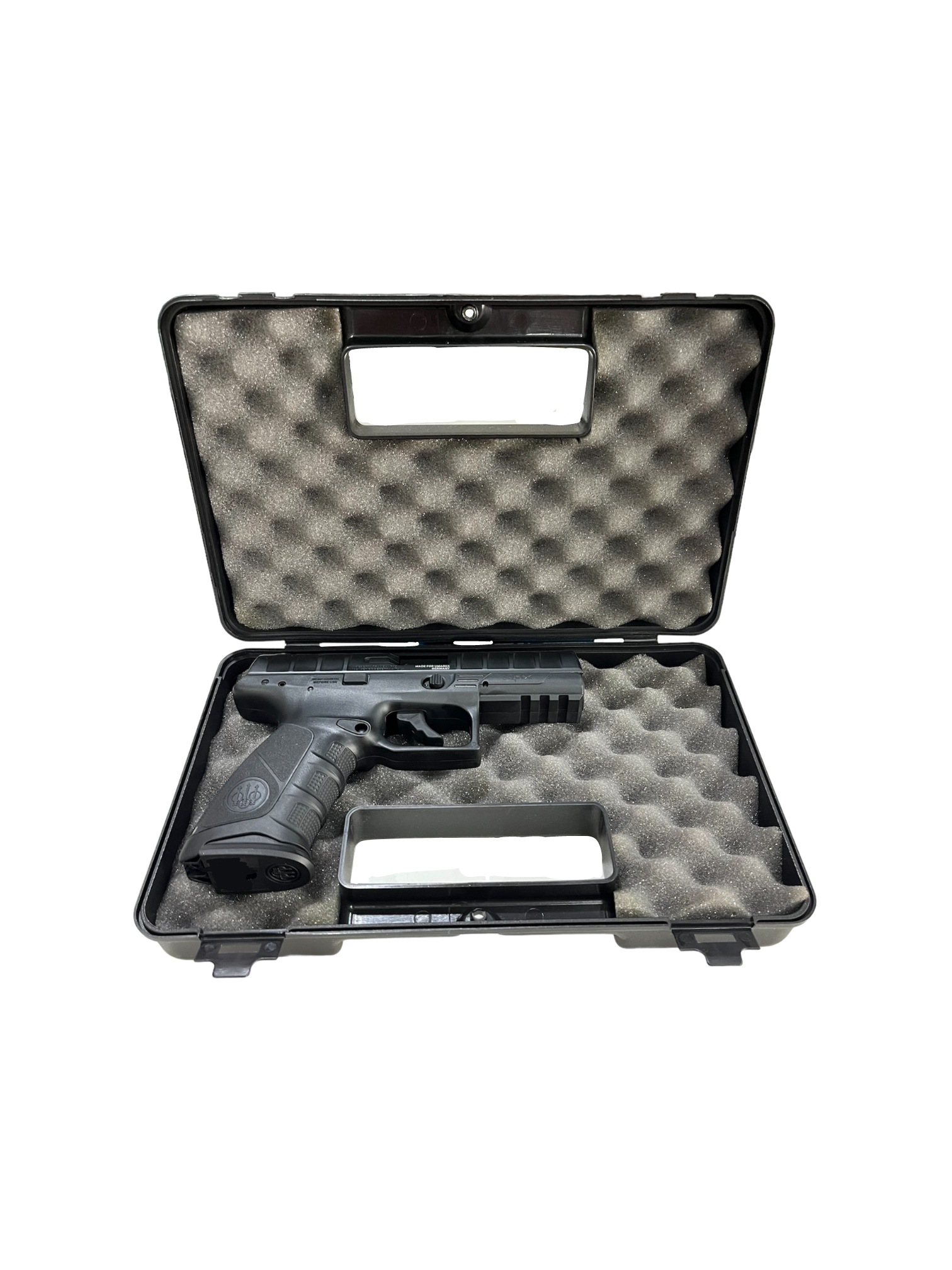 Interior forrado com espuma densa e de formato ondulado, evitando que a arma fique solta na maleta ou risque.