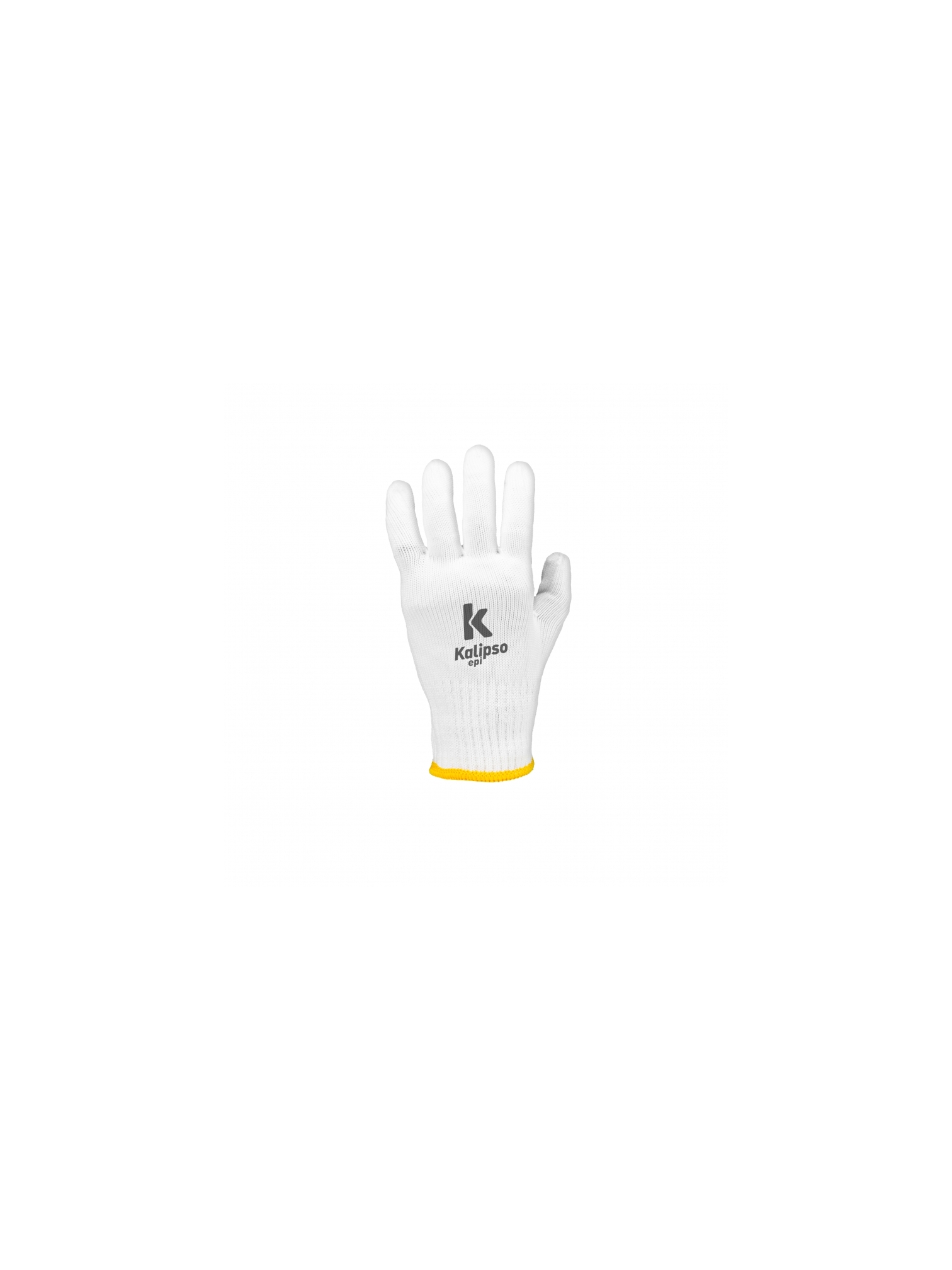 Luva de segurança tricotada em náilon. Punho tricotado em elástico, com acabamento em overloque.