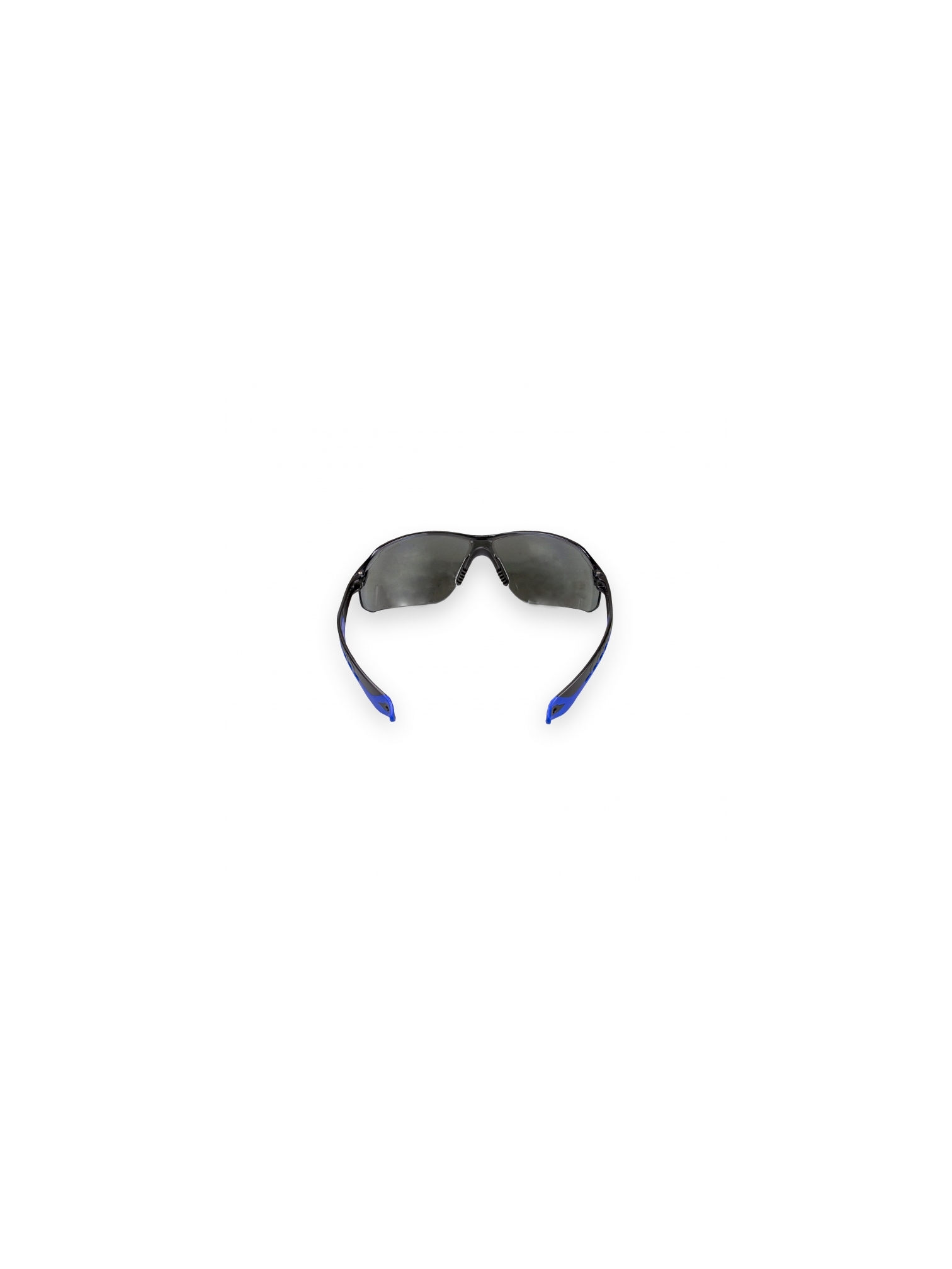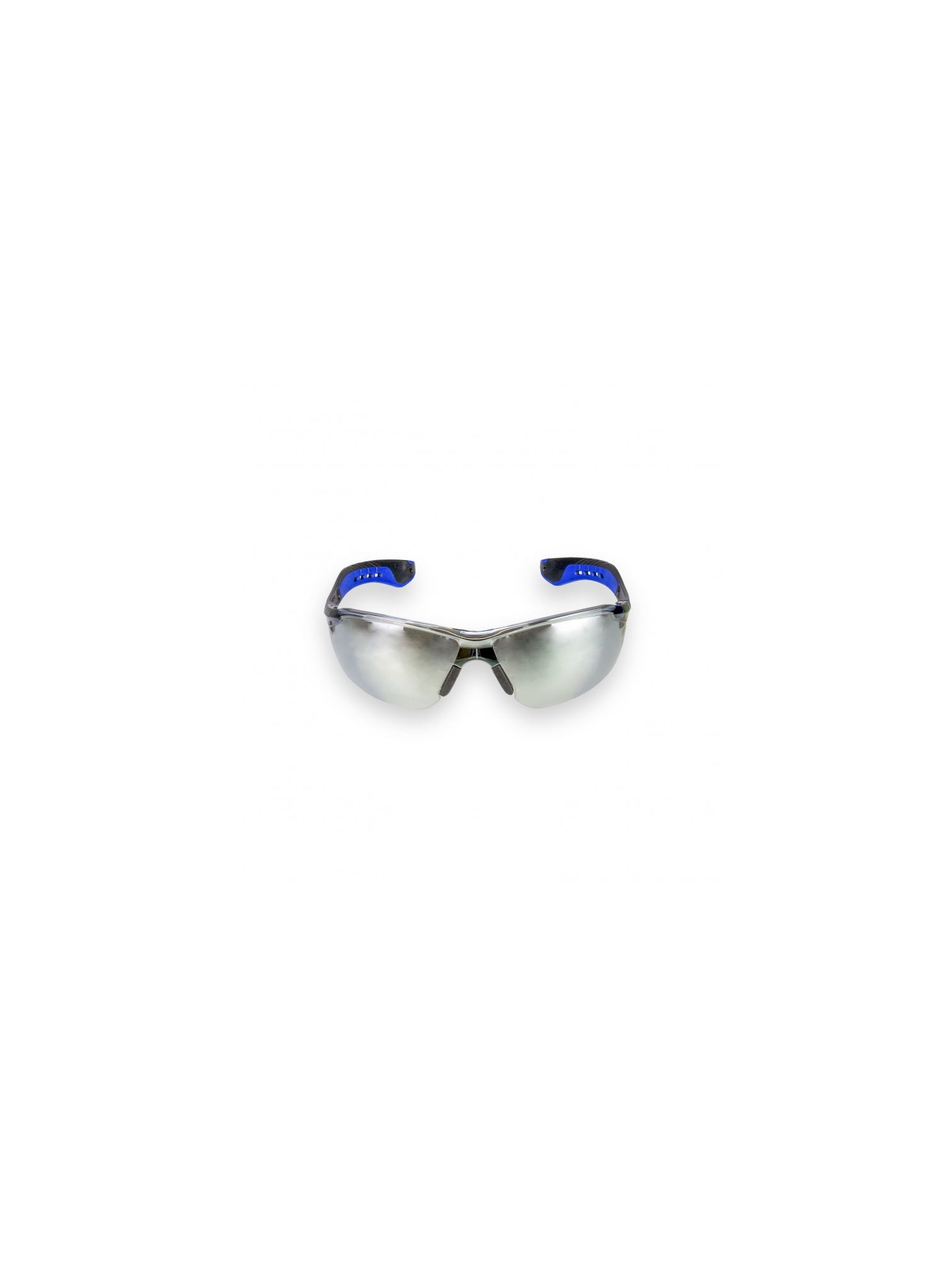Óculos de proteção, constituídos de armação e visor confeccionados em uma única peça de policarbonato, com dois pinos localizados na posição do nariz utilizados para encaixe de apoio nasal confeccionado em borracha termo plástica maleável, hastes tipo espátula confeccionadas de policarbonato e material plástico fixadas às extremidades do visor através de um parafuso metálico com quatro fendas de cada lado para ventilação.