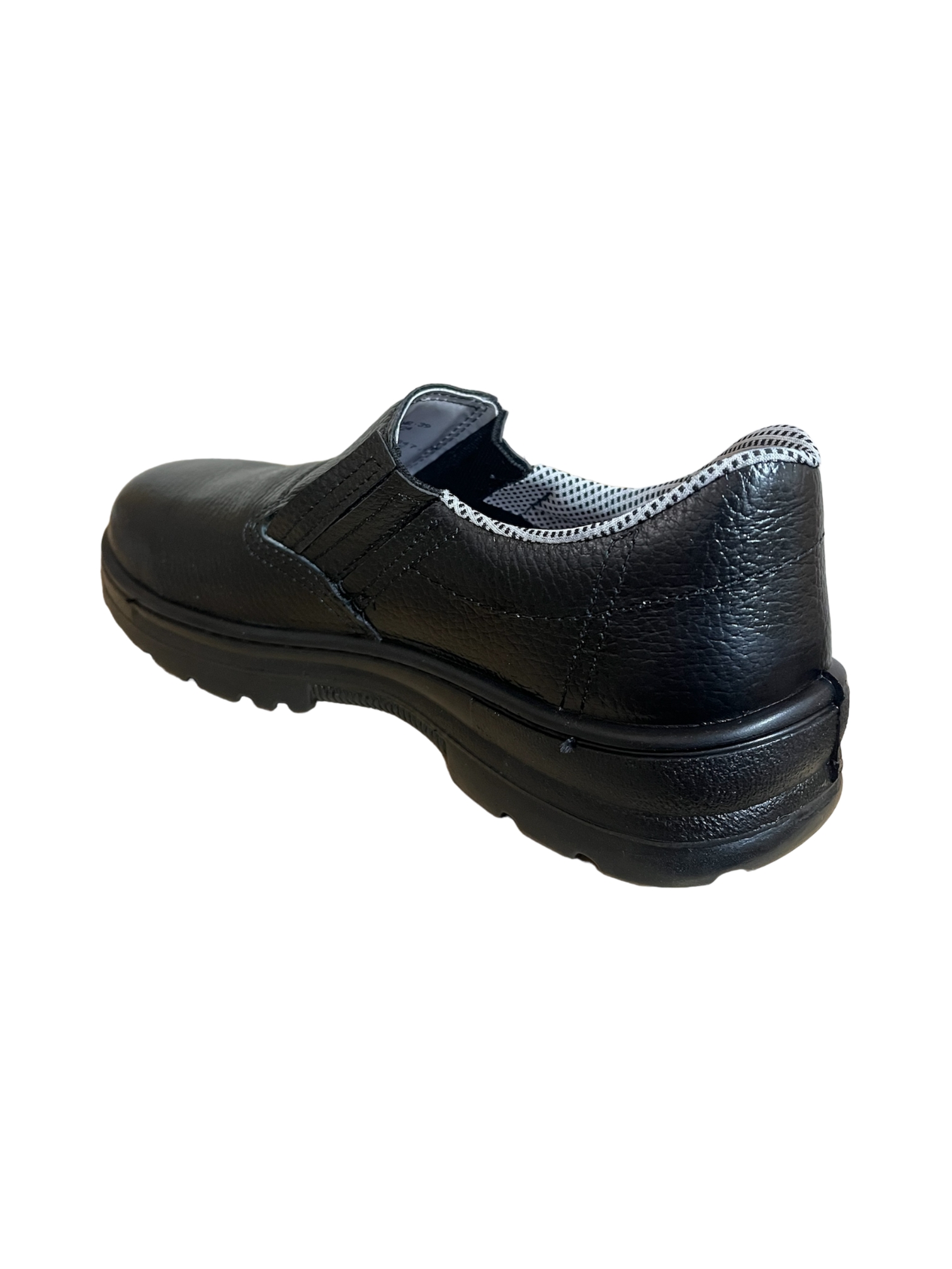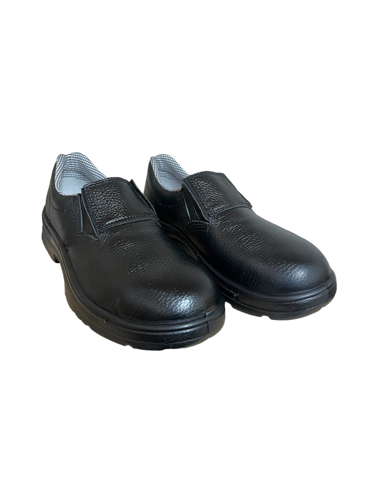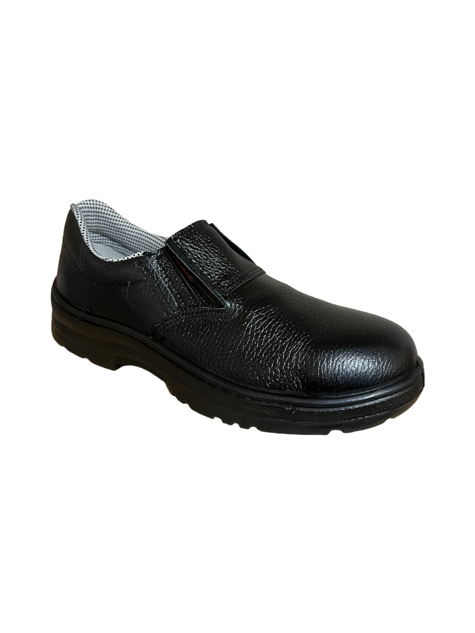 Sapato de segurança confeccionado em couro vaqueta integral estampa relax, com elástico nas laterais. Possui palmilha interna removível em EVA com tratamento antimicróbios. Indicado para serviços em áreas que apresentem riscos de natureza leve, uniformizando e garantindo conforto e proteção aos pés do usuário.