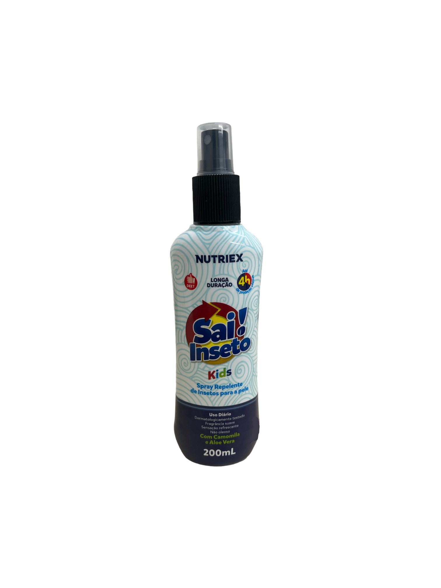 O Spray Repelente de Insetos Sai! Inseto Kids 4 Horas tem uma formulação exclusiva à base de DEET, um ativo repelente de alta eficácia. Com Aloe Vera e Camomila, dá sensação refrescante, com fragrância suave e não oleosa. Especialmente desenvolvido para proteger toda família e as crianças a partir de 2 anos por até 4 horas contra os insetos e aedes aegypti – transmissor da dengue, zika, chikungunya e febre amarela.